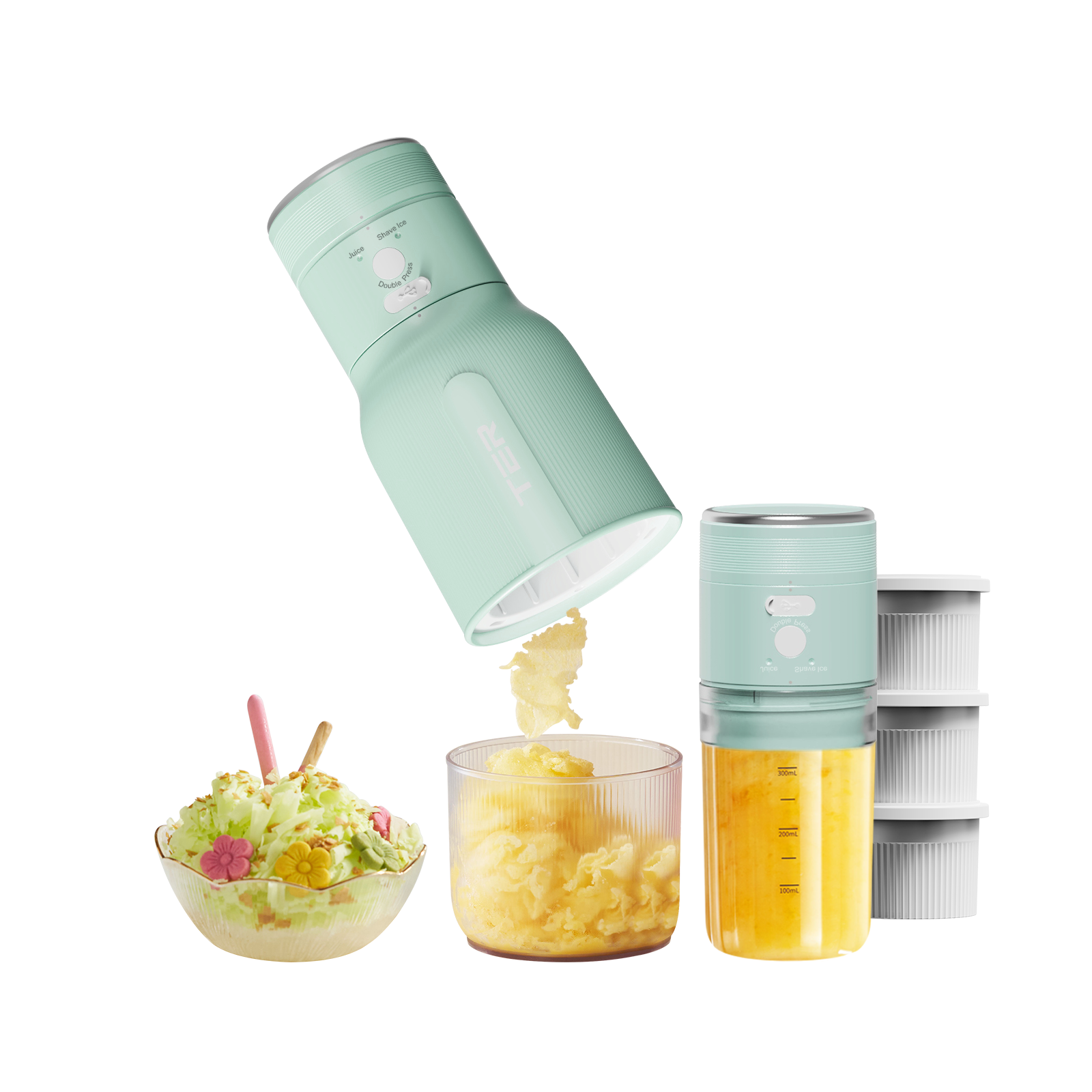 【2-in-1 Blender】TER's latest juice&Shaved ice all-in-one machine. It can extract juice and grind smoothies, making it a versatile machine that allows you to easily obtain healthy and nutritious smoothies and milkshakes. By independently regulating the juicing raw materials, fully unleash your DIY creativity. What to drink, decide for yourself!